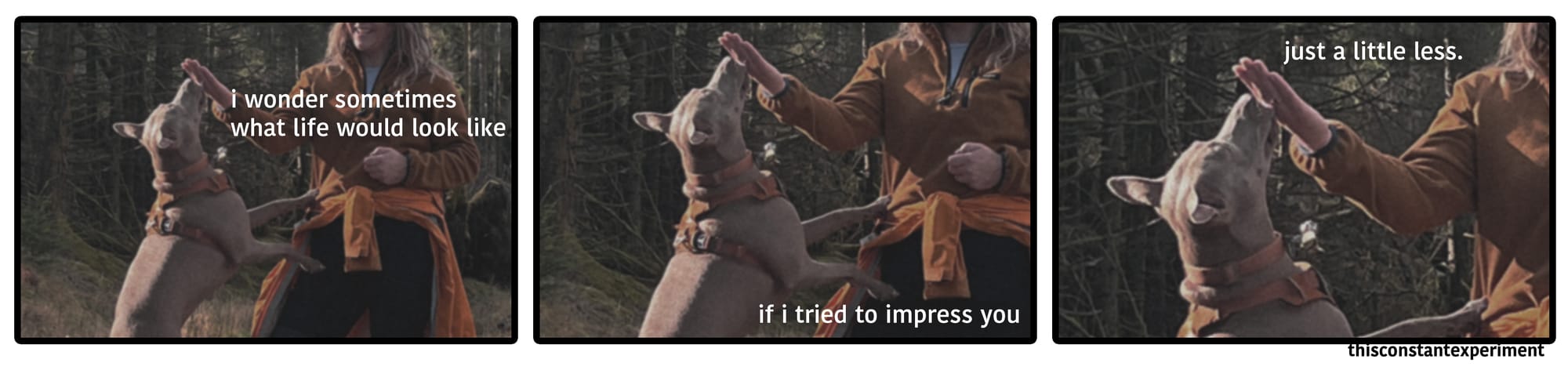 But also, something like TCE wouldn't exist for me if I didn't ask myself the same question as the comic. What if I cared a little less what 'you' thought? That question of what will people think (often very specific people) has been a limiting factor to my creative work since I was in my early 20's and realised that I was not, in fact, going to produce perfect award winning work on the first try. That some of what I made would be Bad. It's not an uncommon revelation or fear - the unrelenting popularity of a certain Ira Glass monologue makes that very clear - but it was enough to make me ashamed of the work, and when I did do the work I did it in secret.
